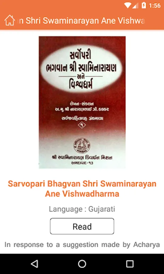Shri Swaminarayan Divine Mission has published more than 75 books till now. This app offers user more than 50 books published by Shri Swaminrayan Dinvine Mission. Some of these books are: