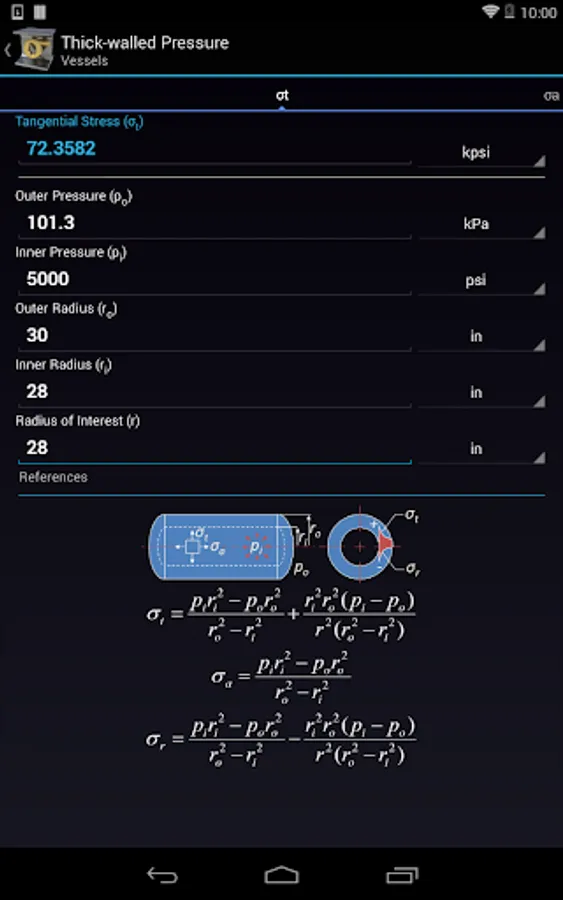 The prominent tabbed output display makes the answer always directly at hand by displaying the output(s) at the top of the screen. By grouping calculators that can output multiple design parameters in a compact and easy to use "tabbed" display, you can "swipe or tap" left and right on the output field and view all of your results.