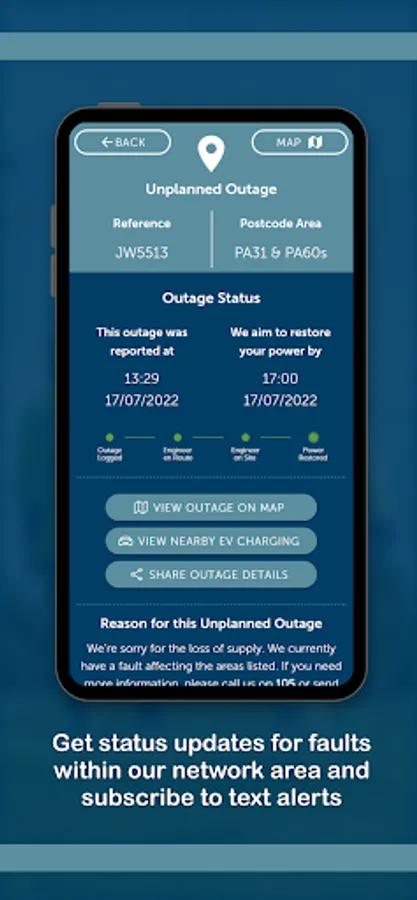Customers can register (and subsequently un-register) to receive automatic updates on any current power cut(s). These updates include: