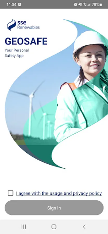 The Geosafe App is a tool for simplifying the sign-in and sign-out process, and monitoring the location of all individuals (employees, contractors and members of the public), whilst present on an onshore wind farm. It achieves this by utilising GPS technology to identify when an individual enters and exits an onshore wind farm geofence that has been created around the perimeter of the wind farm and by monitoring the individual's movements to allow for anomaly detection; If you remain stationary for long periods of time whilst alone you will be contacted by a member of site management to ensure you are safe and well. Contact details for the Wind Operations Control Centre are available within the app in case you run in to any difficulty during your visit to the wind farm.