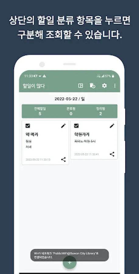 - Tap the top bar to quickly check current to-dos, completed tasks, and past tasks in the organizer.