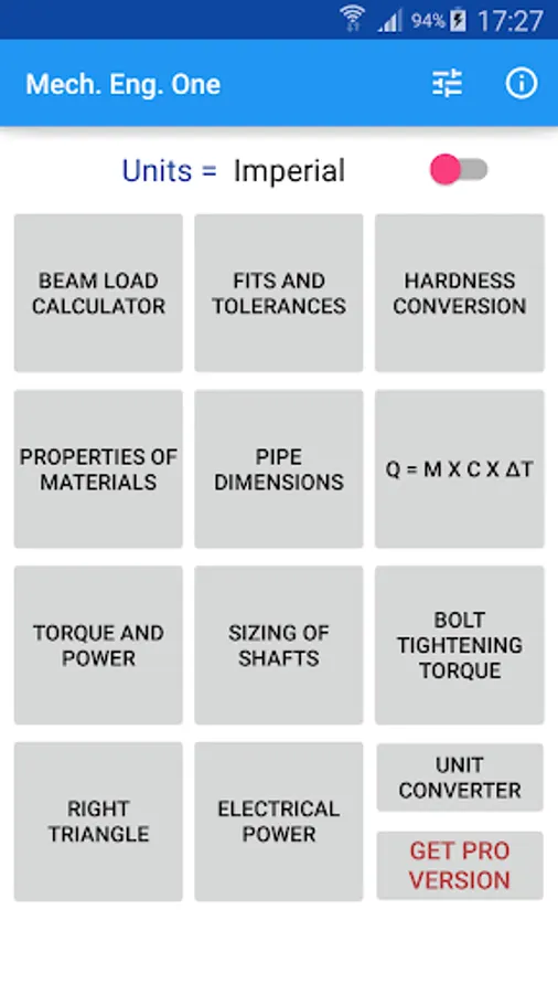 The application includes various reference tables, calculators, converters. It also has one of the most comprehensive unit converter in the market. All of the tools have both Metric (SI) and Imperial (US) units.