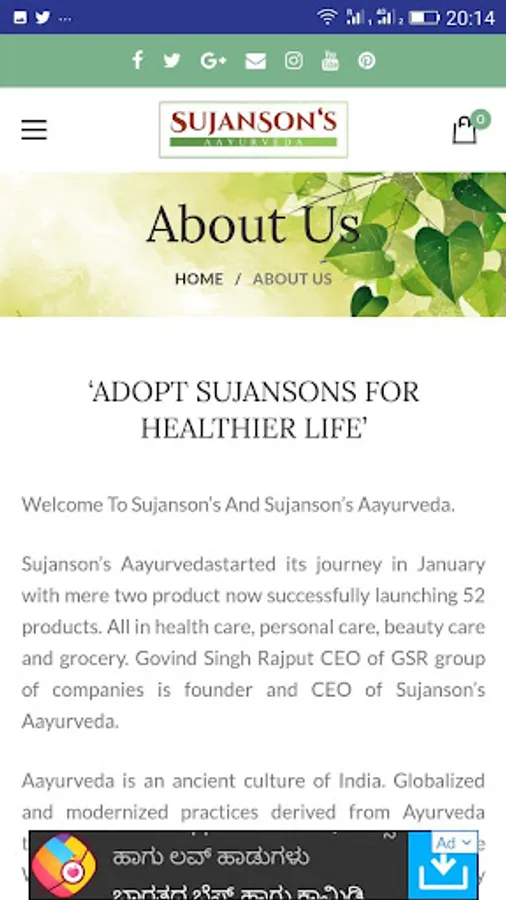 Sujanson’s Aayurvedastarted its journey in January with mere two product now successfully launching 52 products. All in health care, personal care, beauty care and grocery. Govind Singh Rajput CEO of GSR group of companies is founder and CEO of Sujanson’s Aayurveda.