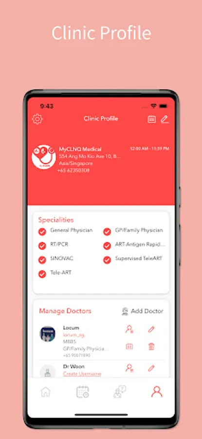 This application is mainly a receiver side which is for Clinic. Clinic able to create and manage a profile for clinic and doctor,