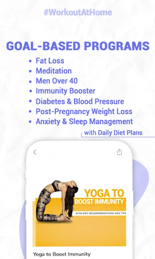 The app offers customized goal-based yoga & fitness programs. The app also offers easy-to-do yoga asanas, exercises & recipes to maintain a healthy balance in life. It is especially made for working women & men, young mothers & also youngsters.