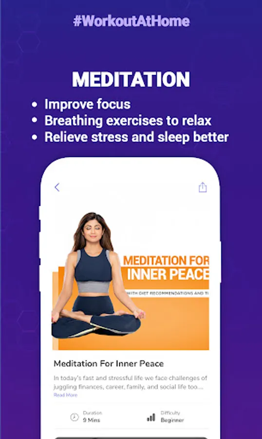 The App comes with Yoga, Exercise, Dance, & Diet Plans, designed by celebrity experts. With her famous philosophy - ‘Swasth Raho Mast Raho’ (Stay Healthy, Stay Happy), Bollywood actor & fitness enthusiast Shilpa Shetty aims to promote a healthy lifestyle for everyone. Our Health & Fitness programs cover everything from Yoga, Meditation, Workout Exercises, Pilates, HIIT, Dance Workouts, Nutrition & Diet Plans. Our programs are created exclusively by experts like Luke Coutinho (Lifestyle Coach), Raj Panigrahi (Yoga Expert) & Vinod Channa (Fitness Trainer).