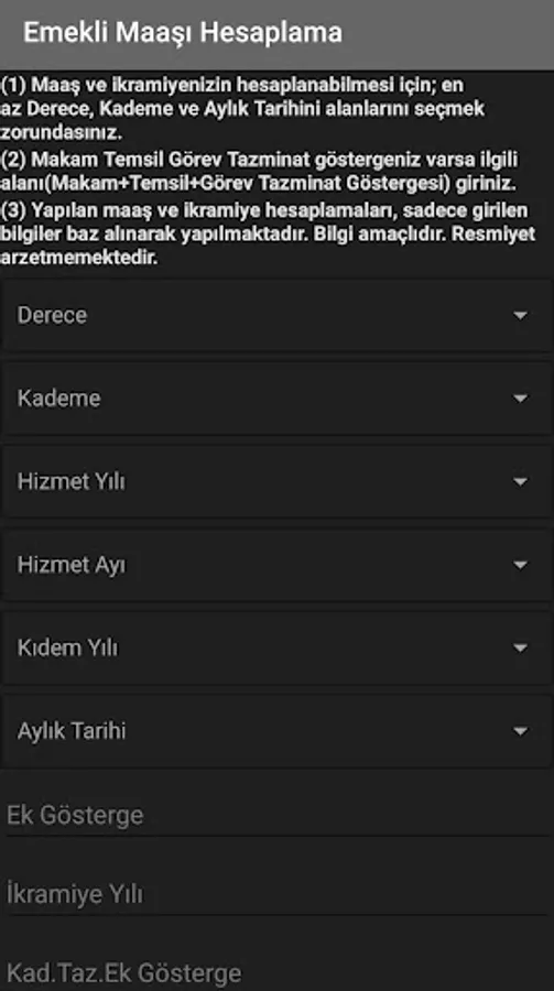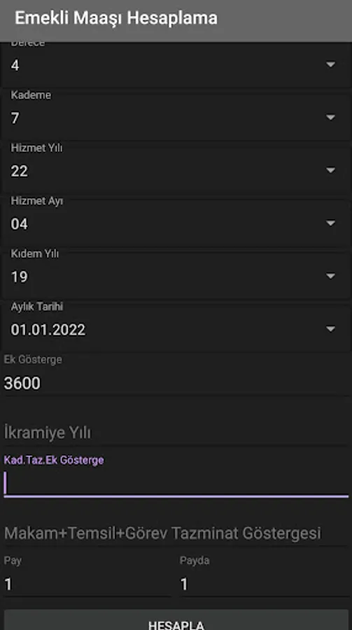 When you download the Retirement Salary Calculator application, you can calculate the degree, level, year of service, month of service, year of seniority, monthly date, additional indicator, bonus year, cad.taz. When you enter the data of additional indicator, position + representation + duty compensation indicator and make calculations, you will be able to easily access information such as special service indicator, monthly coefficient, base monthly coefficient, salary and bonus amounts, seniority pension, paid pension in line with your monthly calculation parameters.