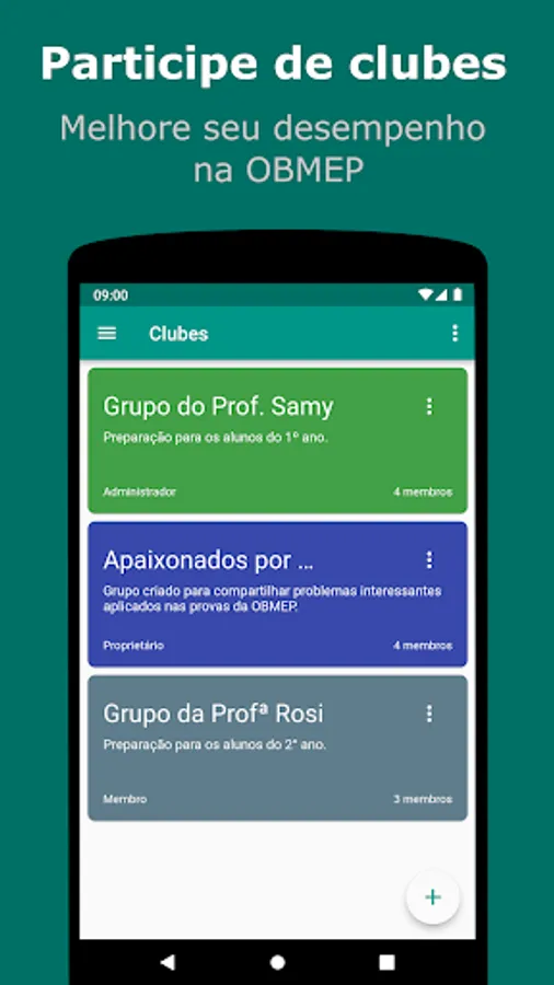 * Club owners and administrators can select OBMEP exam questions and send them as an activity to other participants;
