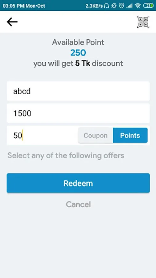 This app offer points on the purchase amount. These points can be redeemed after gathering the required points.