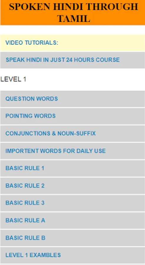 Spoken Hindi through Tamil within Just 24 hours The application contain all the necessary tools to Learn Hindi through Tamil.