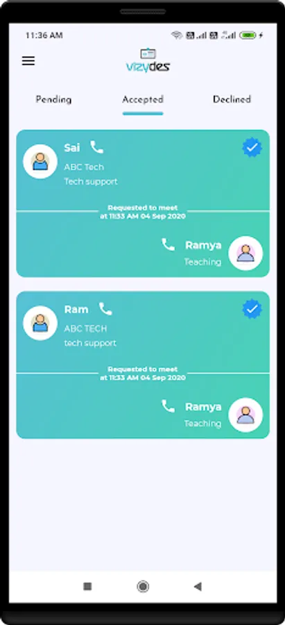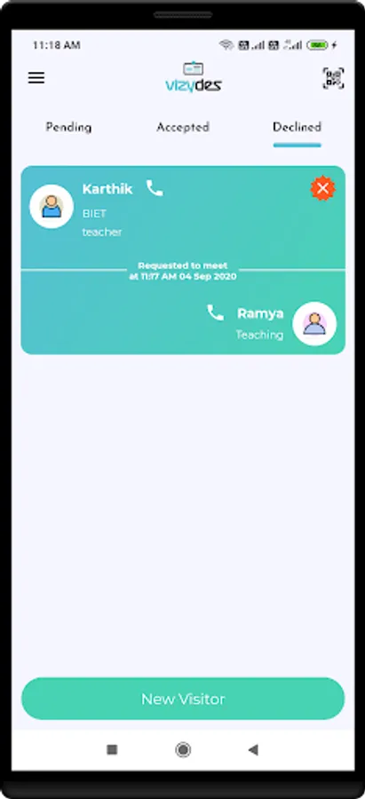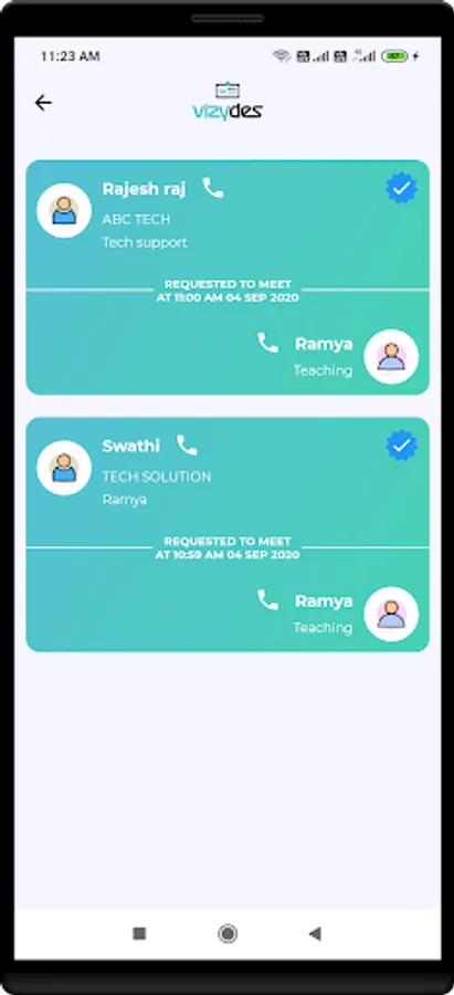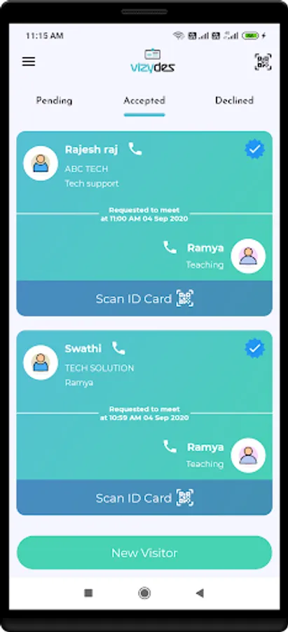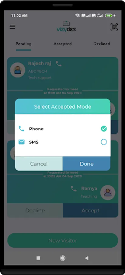 Instead of entering their details manually on a register, they enter their details into android mobile running the vizydes app then notification is automatically sent to the person who the visitor wants to meet