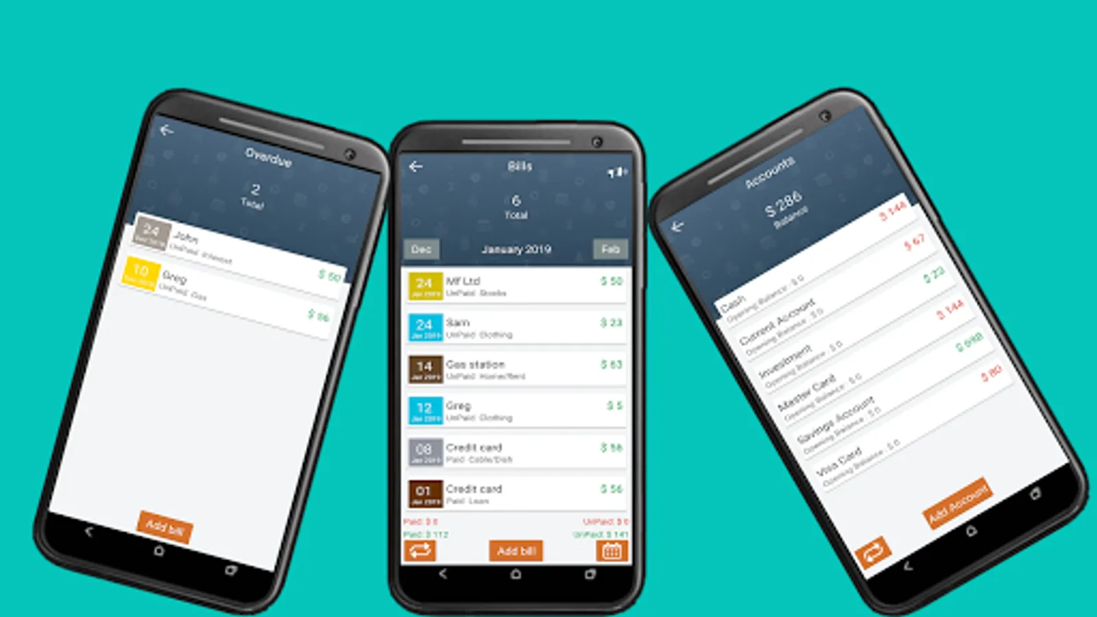 ✓ Associate your bills, expense and income with your accounts and accurately track account balances.