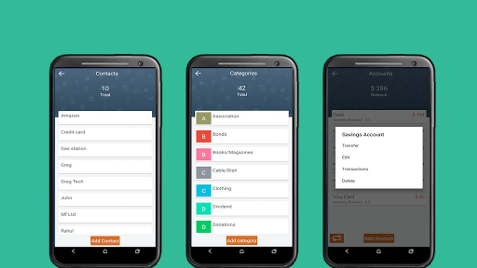 ✓ View Transactions of a particular category or contact