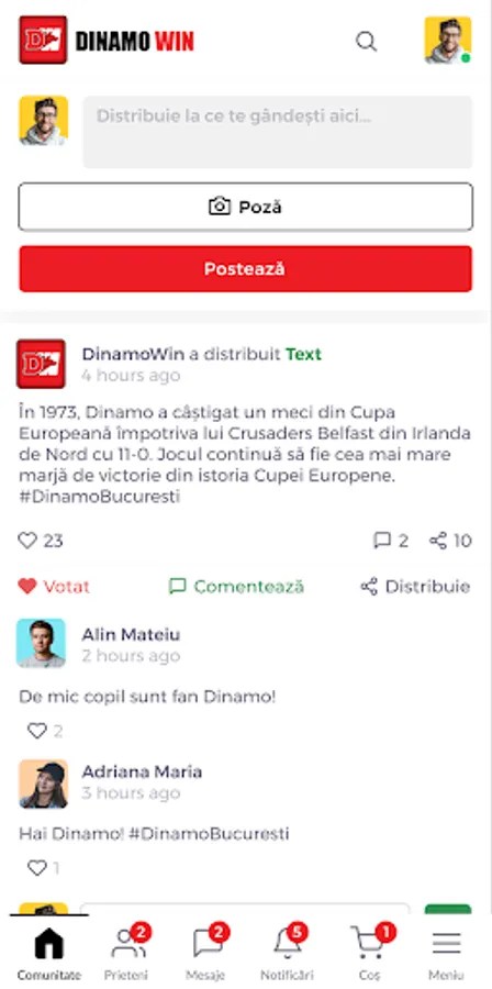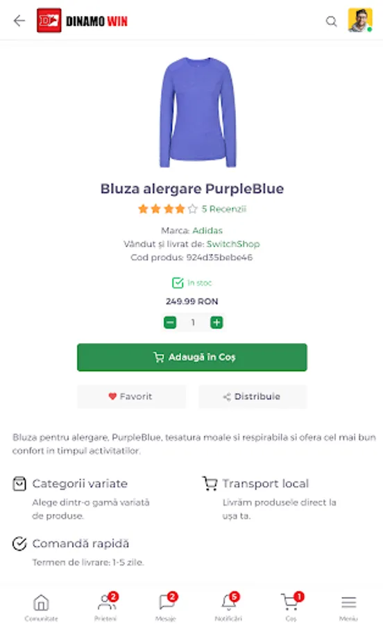 The platform offers a one-stop-shop experience: users have access to their own social network and can purchase anything they want. Besides the socialization area, similar to the big Social Media platforms, DinamoWIN also integrates a MarketPlace in which thousands of products are listed. The product offer is constantly evolving and new traders are constantly joining the project.