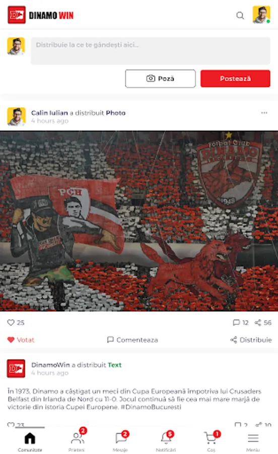 Beyond the purchase of tickets or subscriptions through other programs, the support in the gallery, or in front of the screen, DinamoWIN is the easiest way to support the Dinamo Bucharest team.