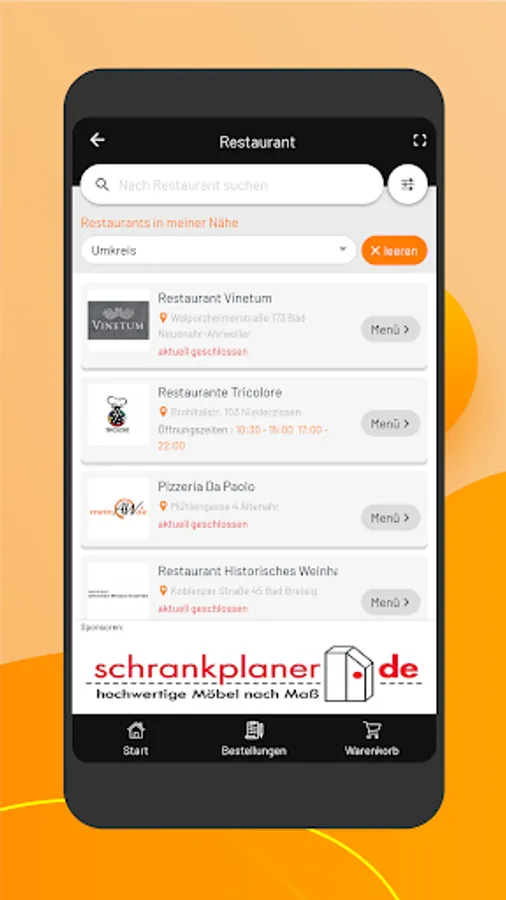 The aim is to create the possibility of finding all dishes and restaurants in one's own region. The order can be placed via the platform or directly with the company. The promotion of local trade is important here.