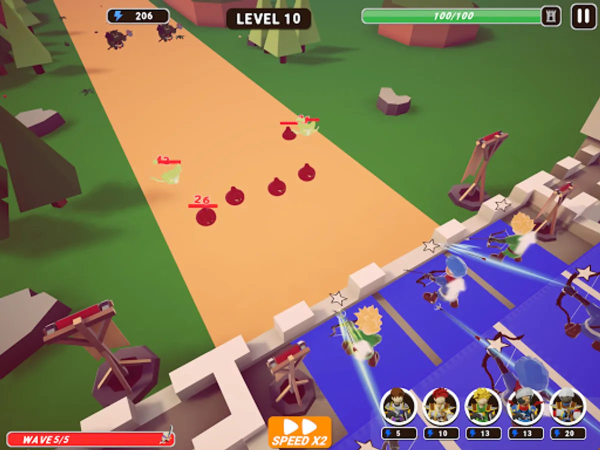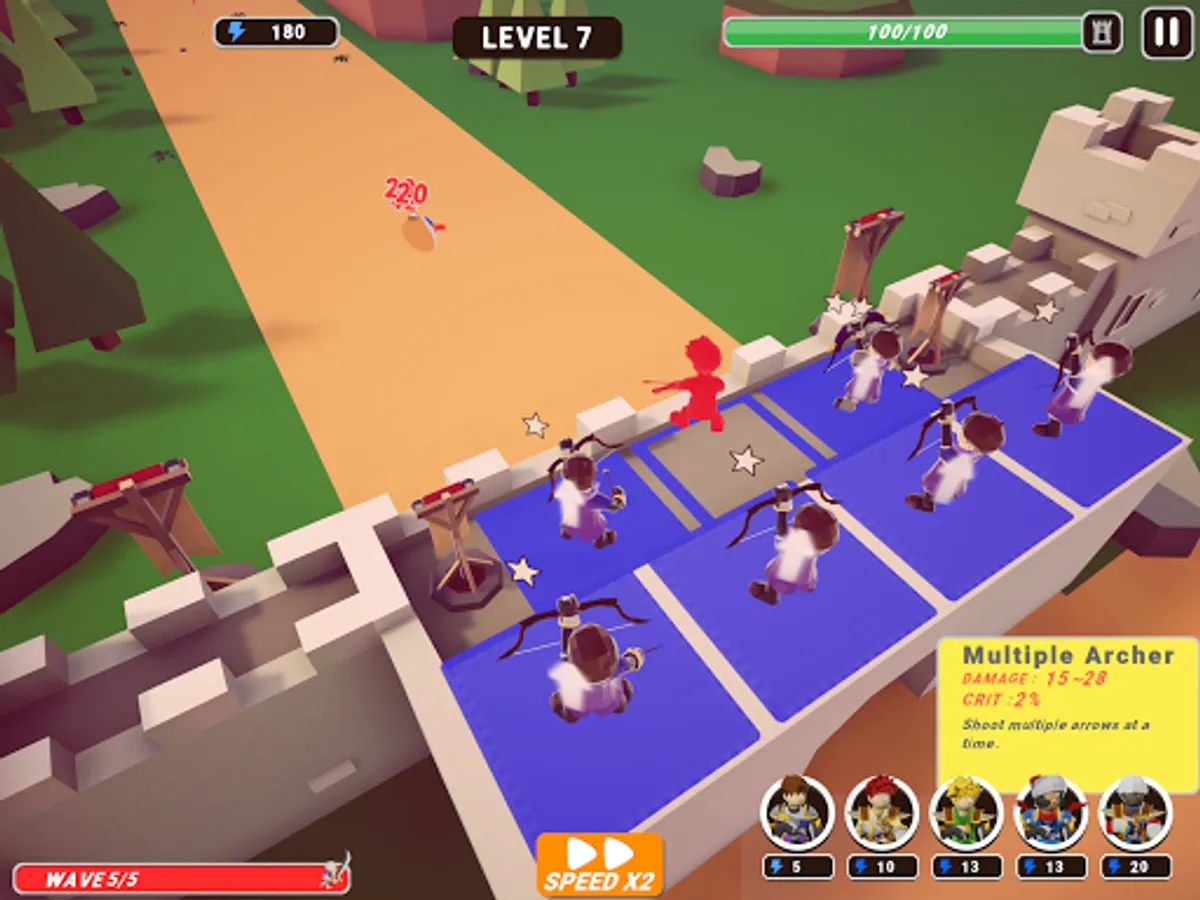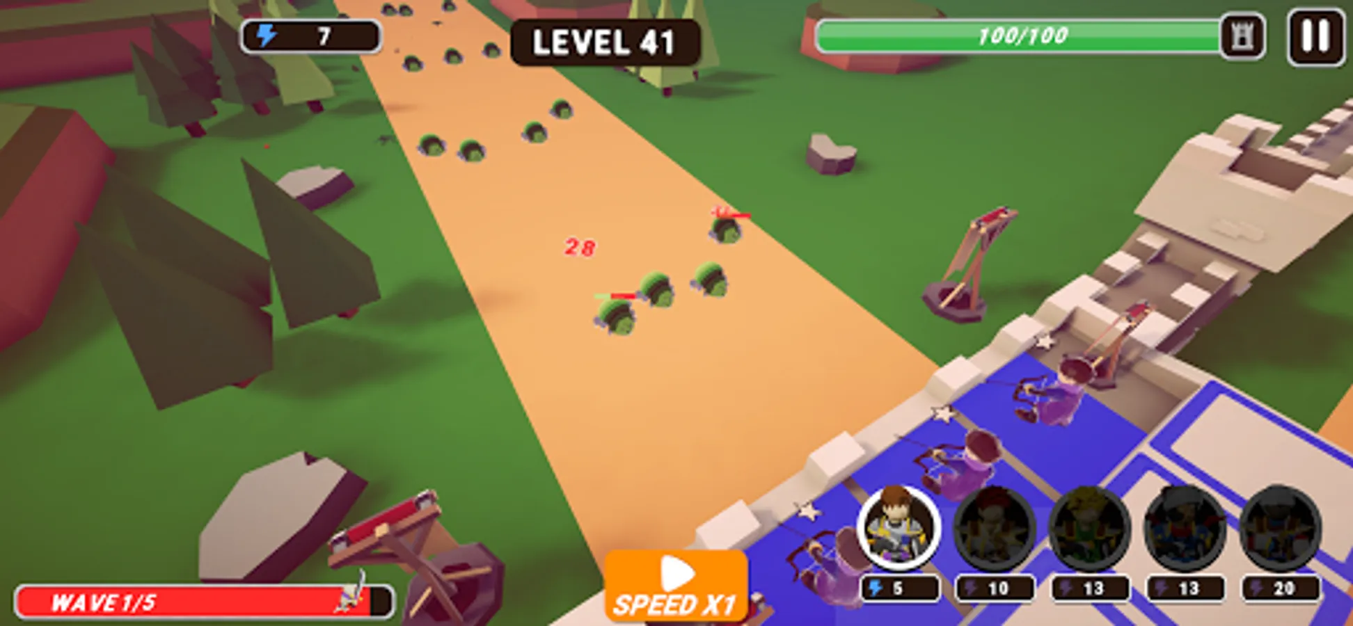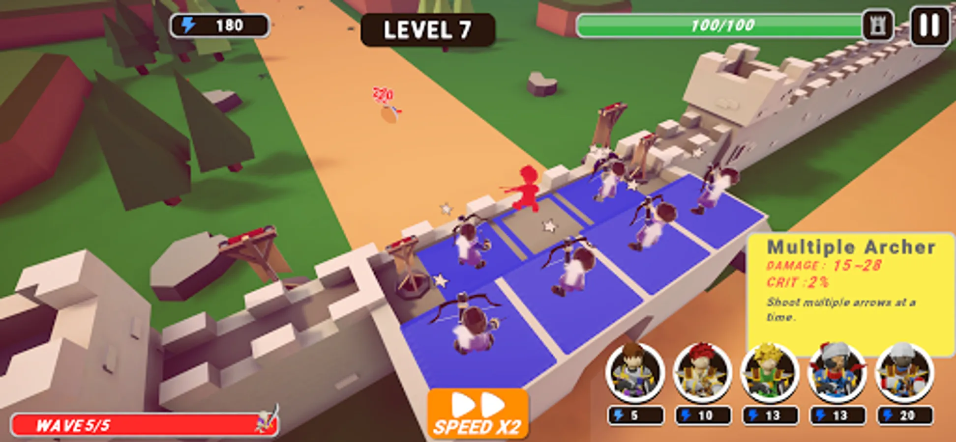 Control the archer to stand on the wall, prevent the monster from approaching the wall, and guard the human home.