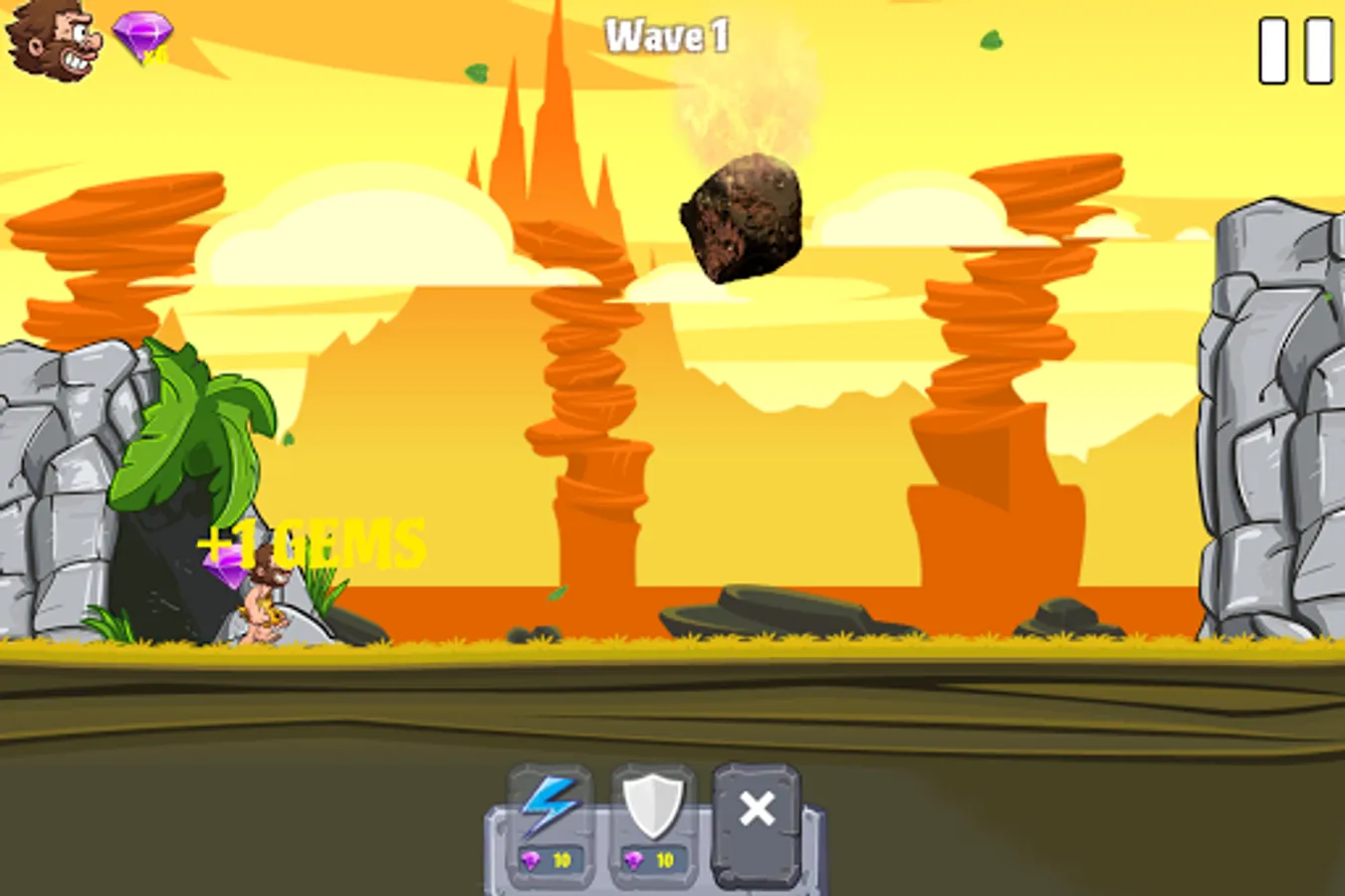 One day, from the sky fell many meteors, it is worth noting that they carry a lot of gems. Our characters are very interested in them, so they have risked their lives to bring them home ... to their wives. Help them bring as many gems as possible and help them survive