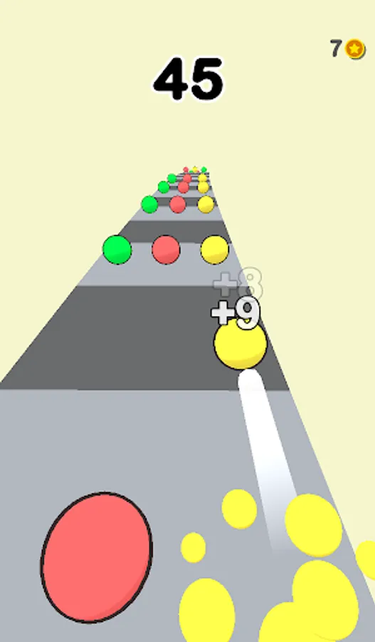 Swipe left or right to roll the ball. Be careful not to bump into balls of other colors. You must treat balls of other colors as enemies.