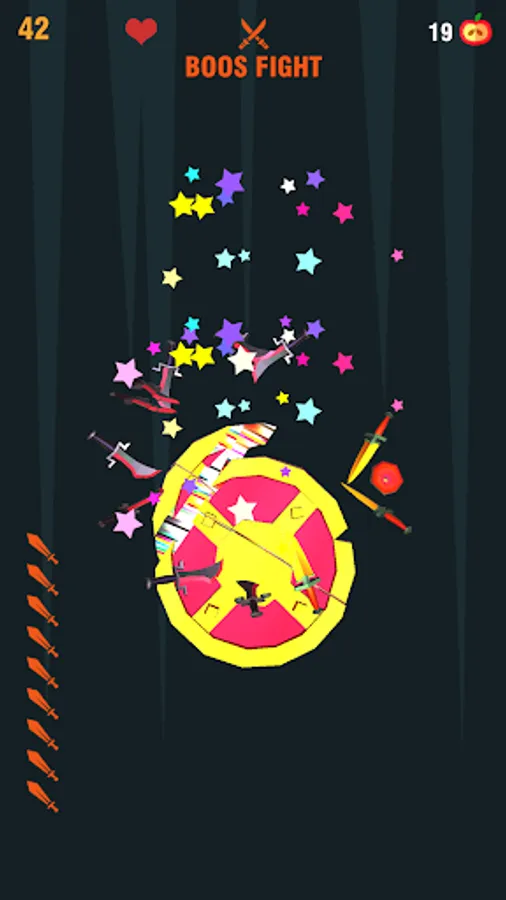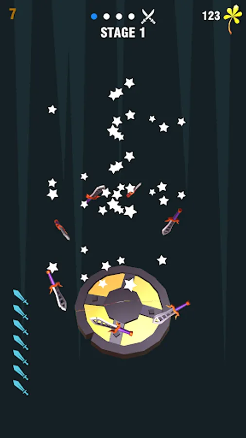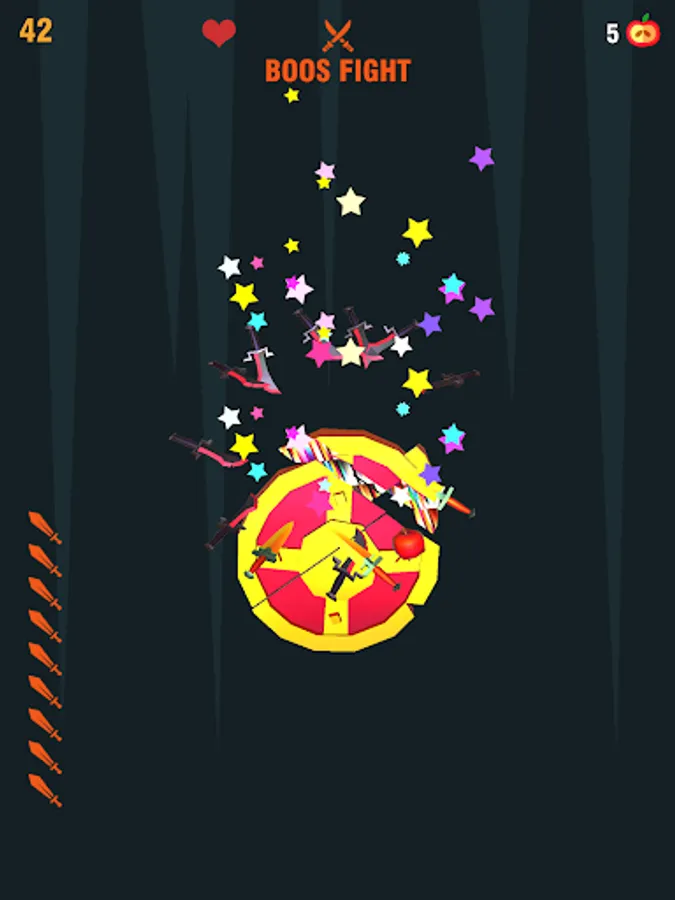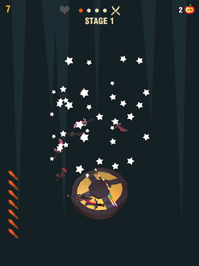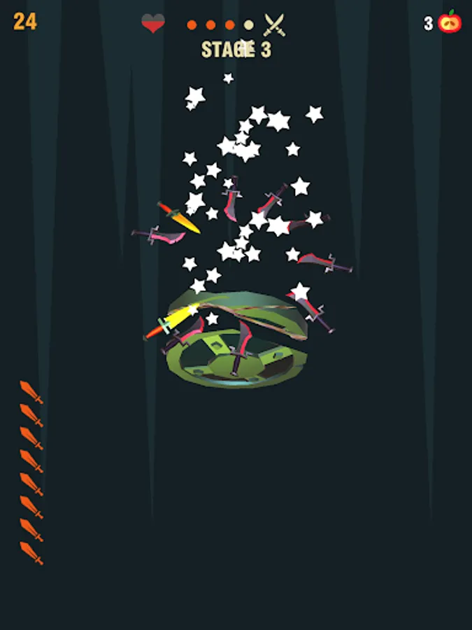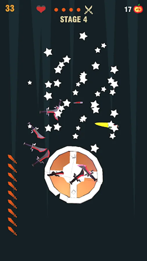 Insert the knife into the shield in succession to break it.Cut the apple open and get a new knife.Every fifth stage has a BOOS - beat them, become the king of flying sword!