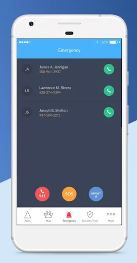The app includes a “Call 911” button and an “SOS” button which calls the 24/7 Shepherd Shield dispatch center (located in the USA). A user needs to have a cellular connection to make such a call.