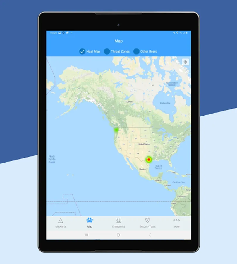 Shepherd Shield users have a customized choice of categories, including high crime areas, active shooter alerts, terrorist threats, weather emergencies, and the addresses of registered sex offenders. Data can be viewed individually, as lists, and by using a map feature. Enable/disable the functions as you choose. There is also a “report” function so a subscriber may contribute information.