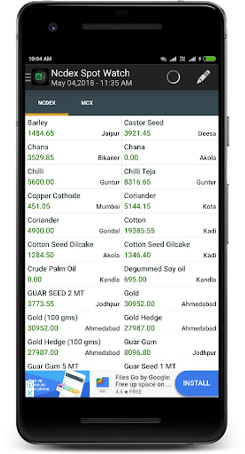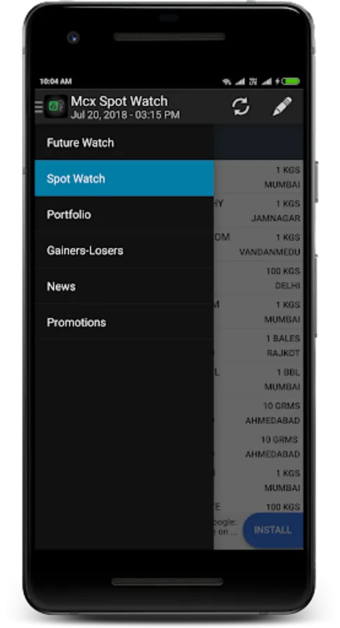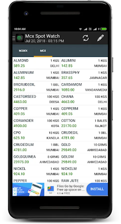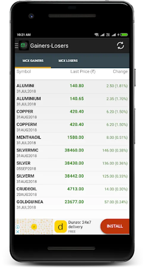 MCX Gainers, Losers, Spot price