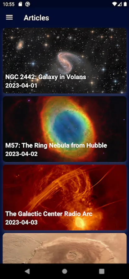 1 - Allows you to access a wealth of information from NASA's server, including articles and news updates related to space exploration.