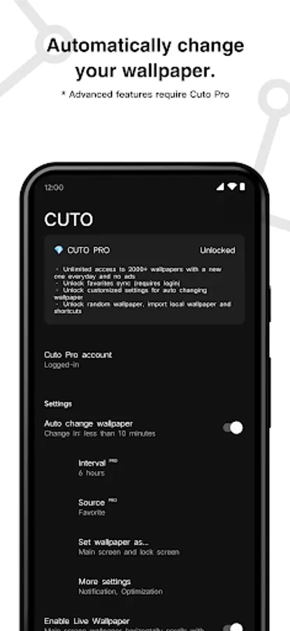 The all new feature allows you to set the change frequency, wallpaper source in the way you like, then let Cuto change it completely automatically.