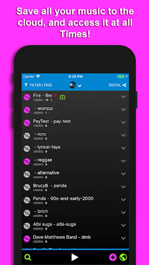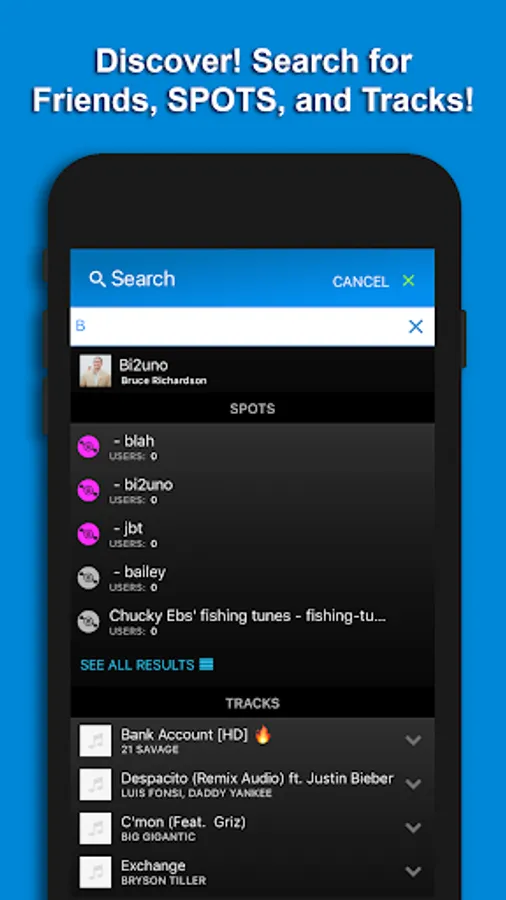 Make memorable experiences through live shows, pictures and video posts on a songs’ timeline. Simply create a SPOT, add tracks and share with the world in real-time.