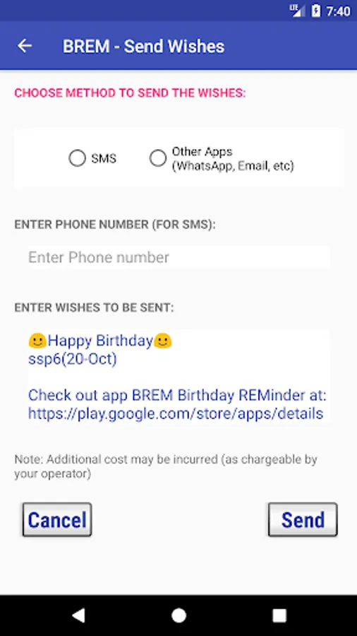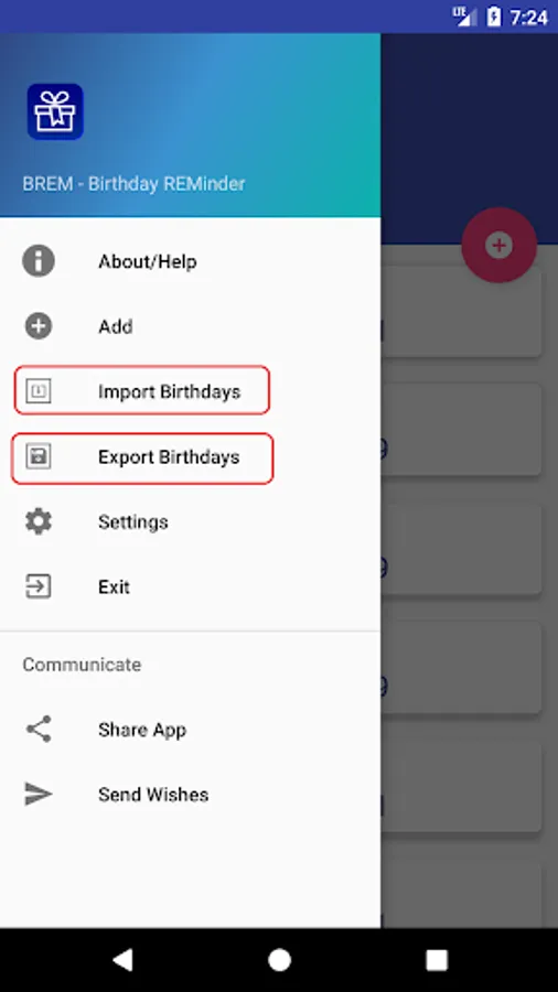 This app lets you set Birthdays and Wedding Anniversaries of your friends and relatives in a simple manner. It also lets you customize the reminder with options such as :