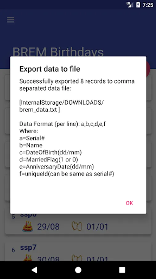 You can now import or export data to a csv (comma separated file) on your internal storage. The location and file names are fixed right now and can be made more flexible to get input from user in the future.