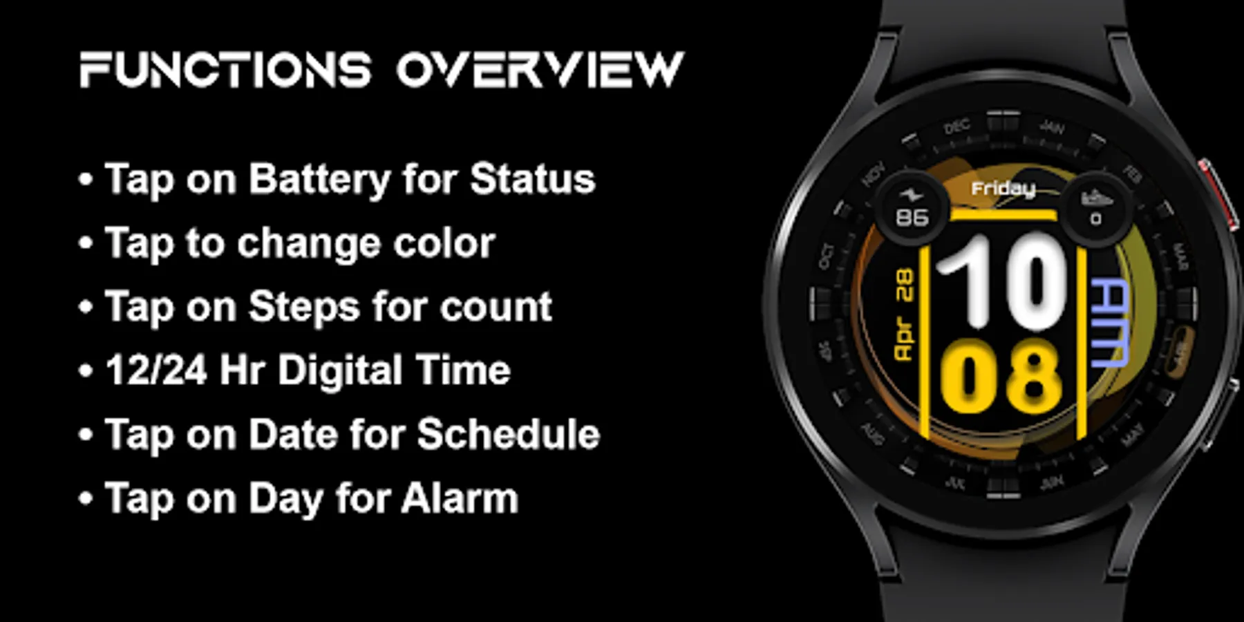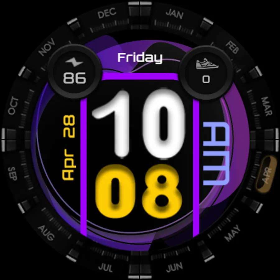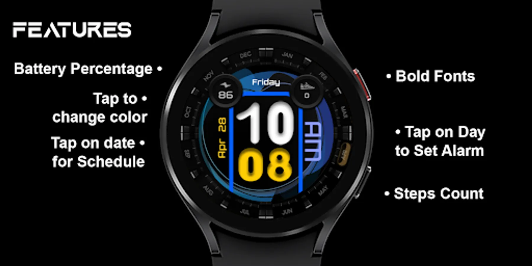 Unique and big digit style. Special designed for Galaxy Watch and other WearOS watch with minimum API 28+.
