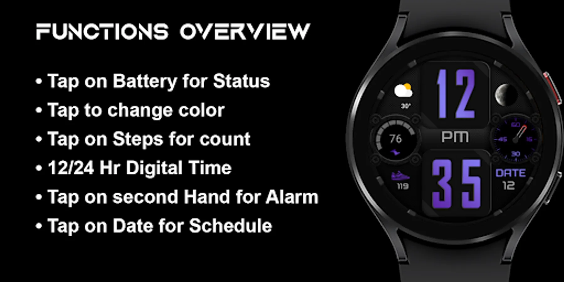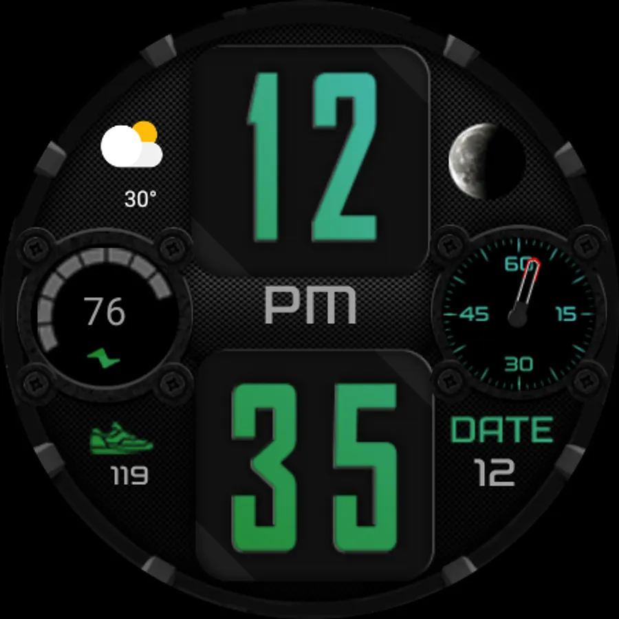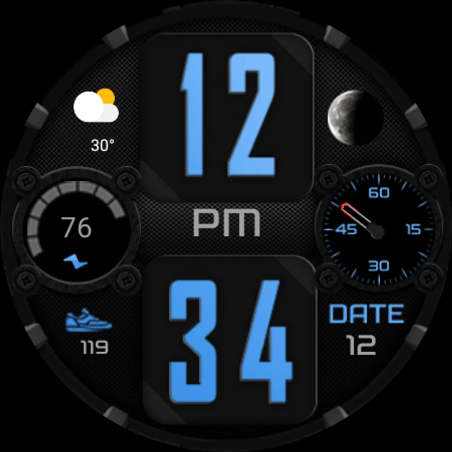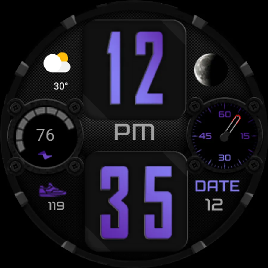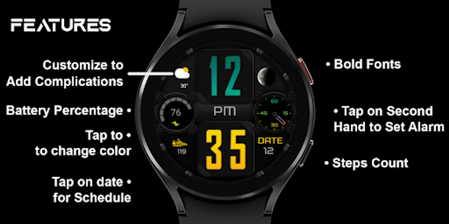 Unique and big digit style. Special designed for Galaxy Watch and other WearOS watch with minimum API 28+.