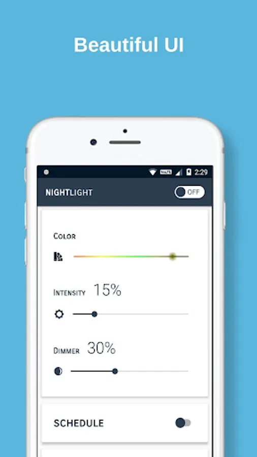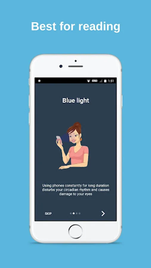 This bluelight from your screens keeps you awake and doesn’t let you sleep easily. Exposure to blue light before sleep disturbs your natural circadian rhythm (sleeping cycle) and causes inability to fall asleep. Use Night Light to reduce blue light from your device screen and get a better sleep. It is scientifically proven that reducing blue light improves sleep quality.