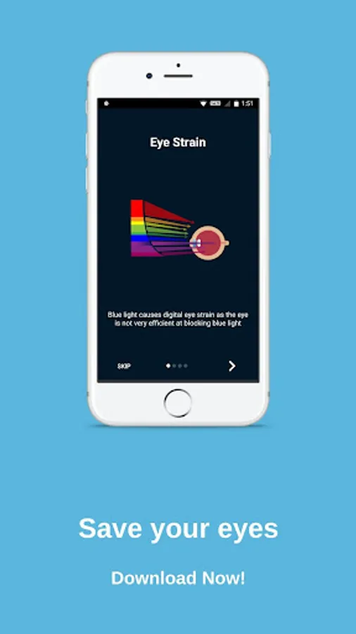 This strain is because of the harmful blue light emitted by the screens. Blue light from your phone screen causes digital eye strain as the the eyes are not very efficient at blocking bluelight. Eye strain damages your eyes and causes pain in the eyeballs. Your eyes are sensitive to blue light emitted by the device screen and get strained after a long usage of phone.