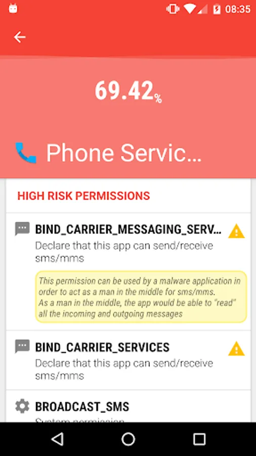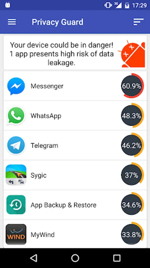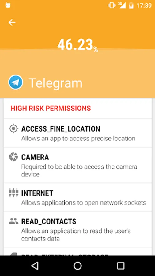 The aim of this app is to create awareness in the user about the possibility of data leakage and the importance of its personal data. The app evaluates the data leakage risk of each application installed on user’s device using the permissions requested.