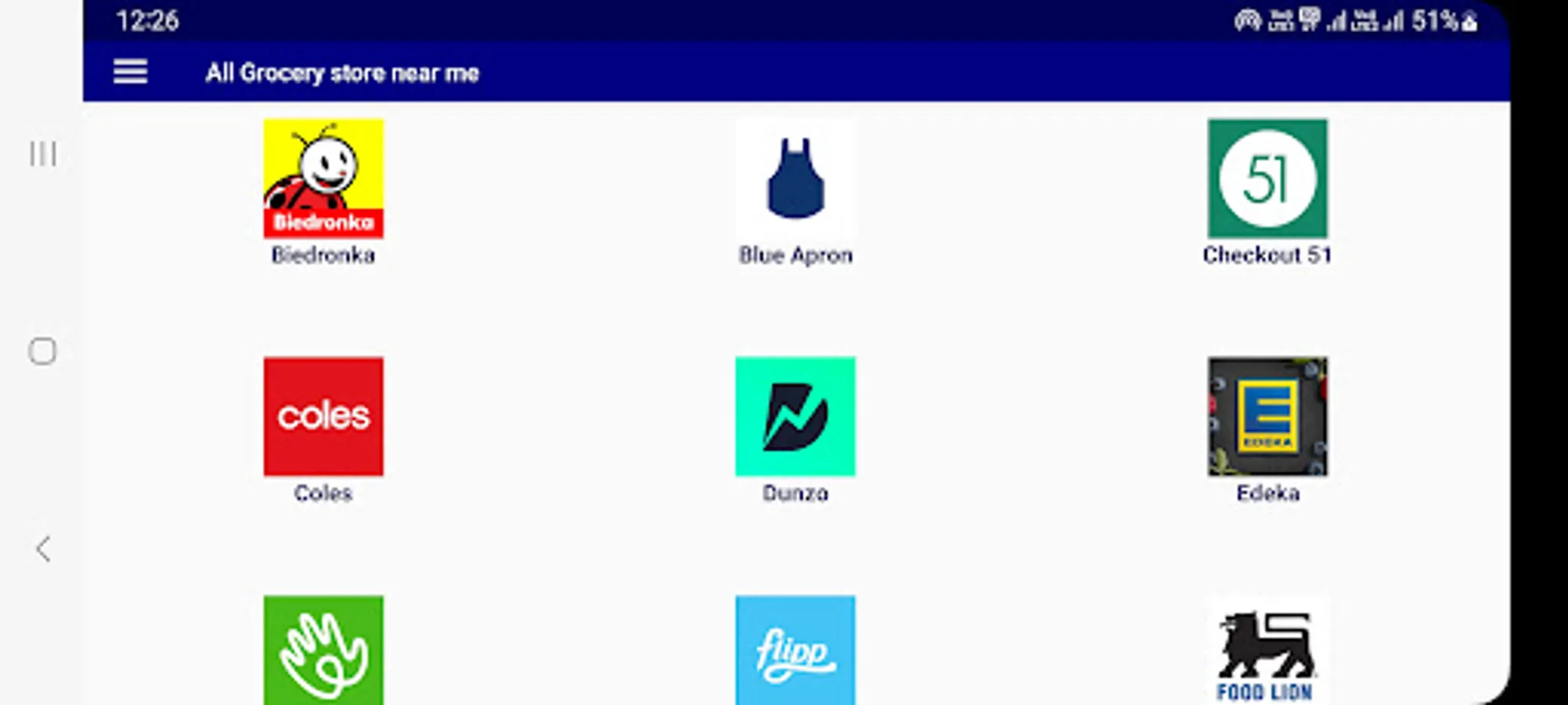 In this online grocery shopping apps like 7NOW: Food Delivery, bigbasket & bbnow: Grocery App, BigOven Recipes & Meal Planner, Blinkit: Grocery in minutes, FreshDirect: Grocery Delivery, Gopuff-Food Delivery, Ibotta: Save & Earn Cash Back, Instacart, Tesco Grocery & Clubcard, Walmart: Shopping & Savings, Woolworths, Albertsons Deals & Delivery, ALDI, AnyList: Grocery Shopping List, Biedronka - Shakeomat, gazetki, Blue Apron, Checkout 51: Cash Back Savings, Coles App, Dunzo: Grocery Shopping & More, EDEKA, Everli - Spesa online, Flipp - Weekly Shopping, Food Lion, My H-E-B, HelloFresh: Meal Kit Delivery, JioMart Online Shopping App, Migros – shop & save, My Morrisons, Ocado: supermarket shopping, Out of Milk - Grocery Shopping, Safeway, Sainsbury's Groceries, Whole Foods Market, Zepto: 10-Min Grocery Delivery, etc.
