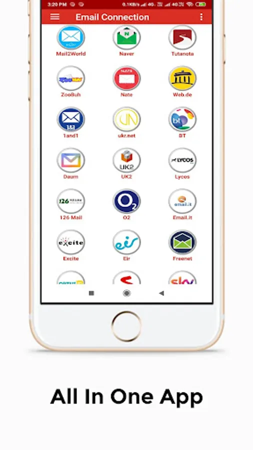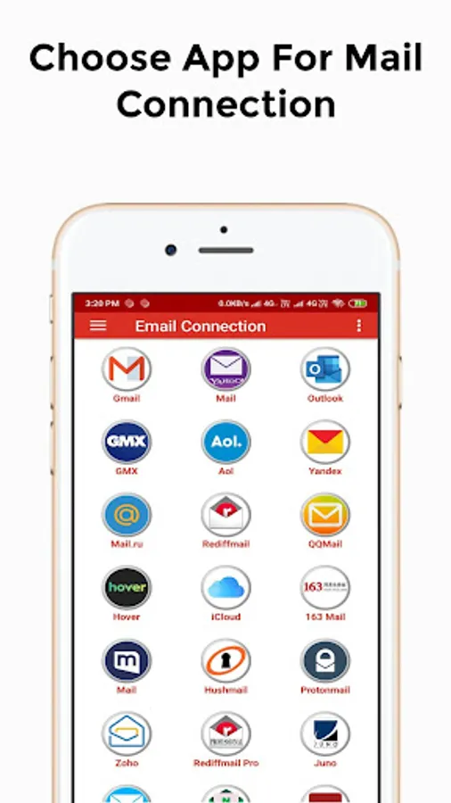 In Email Connection App You Can Access App like Gmail , Yahoo Mail – Organized Email , Microsoft Outlook , Mail.ru - Email App, Yandex.Mail , ProtonMail - Encrypted Email, Tutanota - Free Secure Email, GMX - Mail & Cloud , mail.com mail , Zoho Mail , WEB.DE , 1&1 Mail , Daum Mail - 다음 메일 , Mail2World, AOL , Rediffmail , QQmail , hover , icloud, hushmail , juno , naver , nate , ukr , bt , lycos , 163 , o2 etc.,