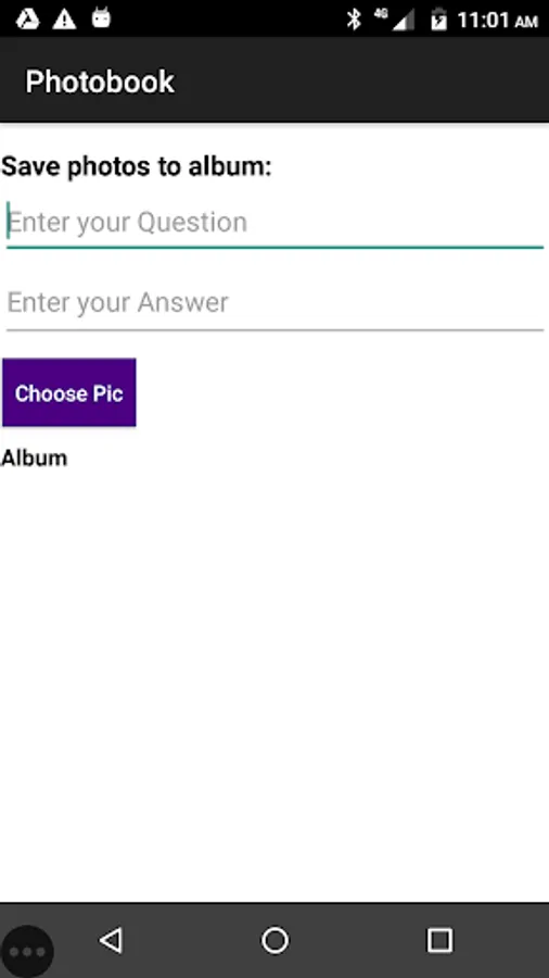 Create your album in the Photobook app. For this, load the album with your photos from gallery. Enter questions and answers along with choosing the photos. The photo album will display only the questions. When you are ready, tap each photo in the album, the photo will open in a new screen and Photobook will ask your friend the question you have keyed in. Your friend has to tap the icon to answer. If it is correct, Photobook will agree, otherwise it will say incorrect and provide the answer you have keyed in.