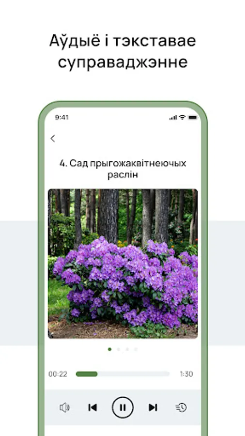 The audio guide to the Central Botanical Garden of the National Academy of Sciences of Belarus allows you to take a tour of the garden and learn about the flower collections, "Island of Arts", ecological trail, greenhouses with tropical and citrus plants and much more.