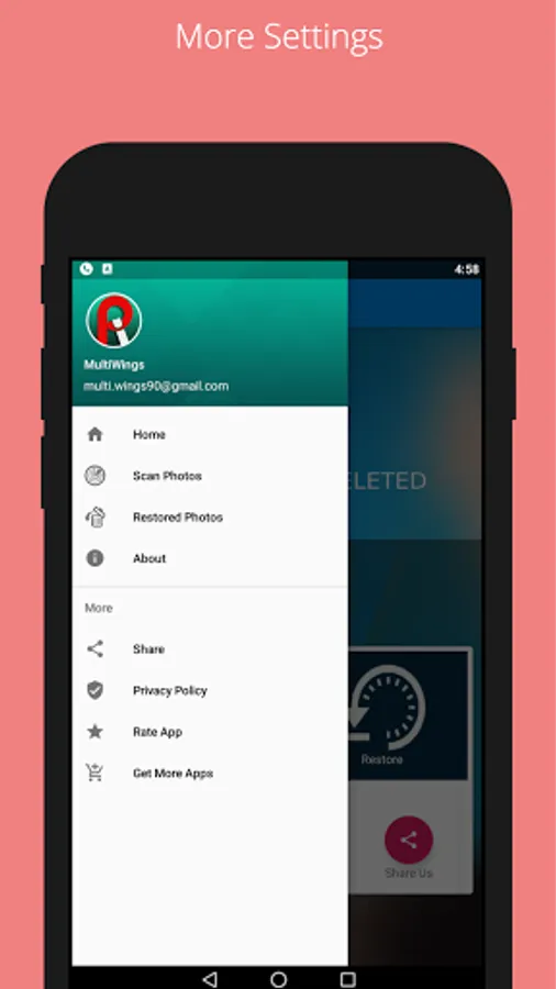 This application is very easy to use and just in one click it scan your complete phone and recover your selected photos.
