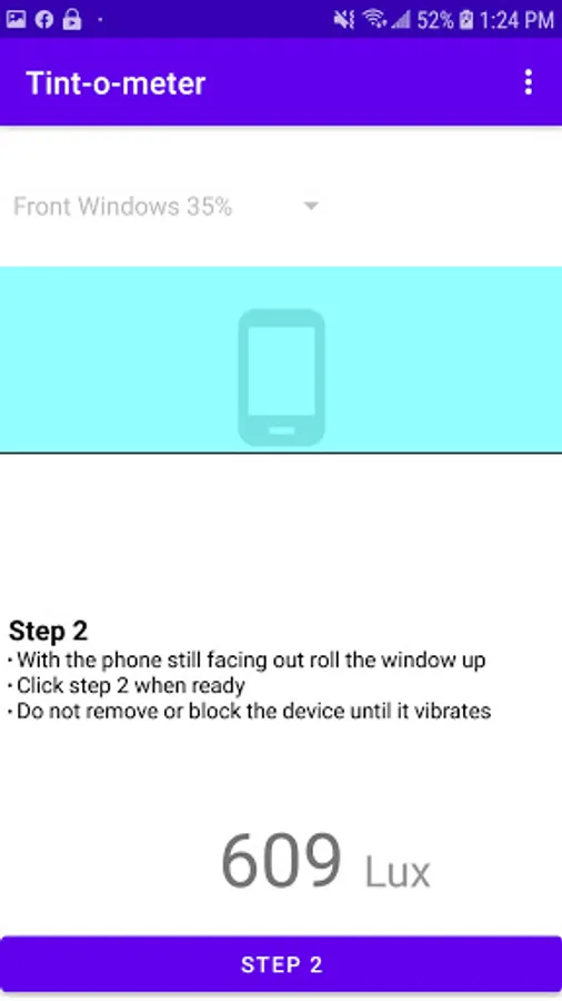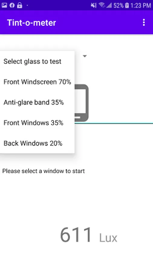 Tint-o-meter works by measuring the difference in light(Lux) using your device's light sensor.