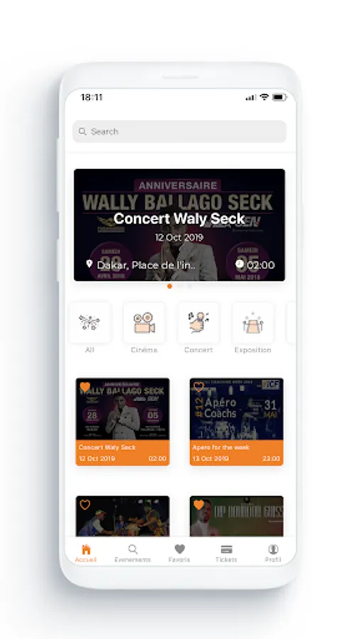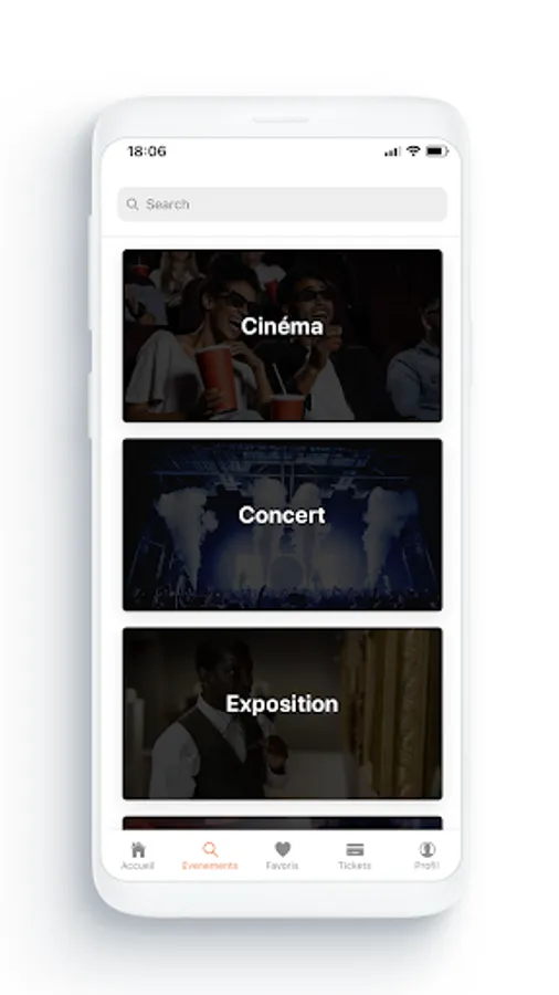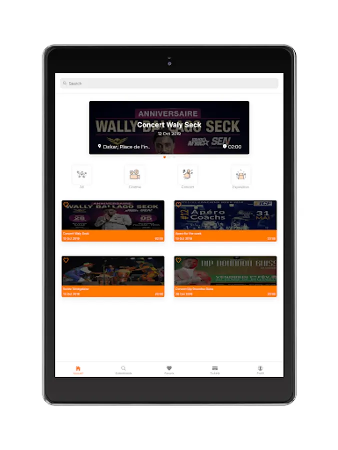 Search events around: Concerts, Shows, Cinema, Party, Trade Shows, Forums ...