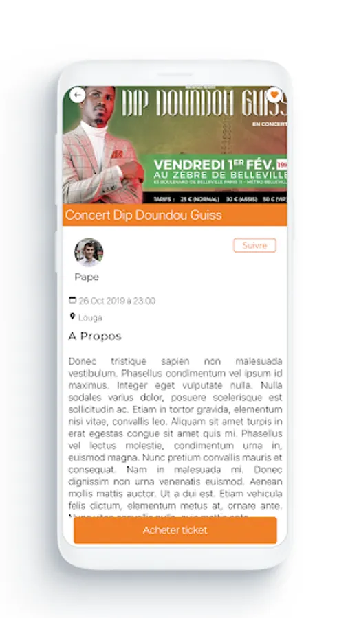 Buy your Electronic Ticket without traveling by Credit Card or Mobile Money and easily access your event on the D-Day by presenting your Ticket QR code.