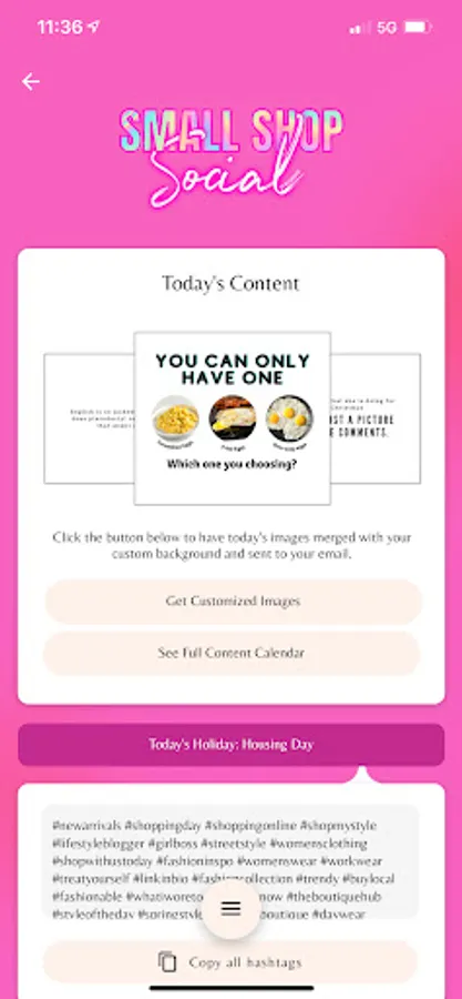 Daily social media content for Boutique Owners of Small Shop Social.