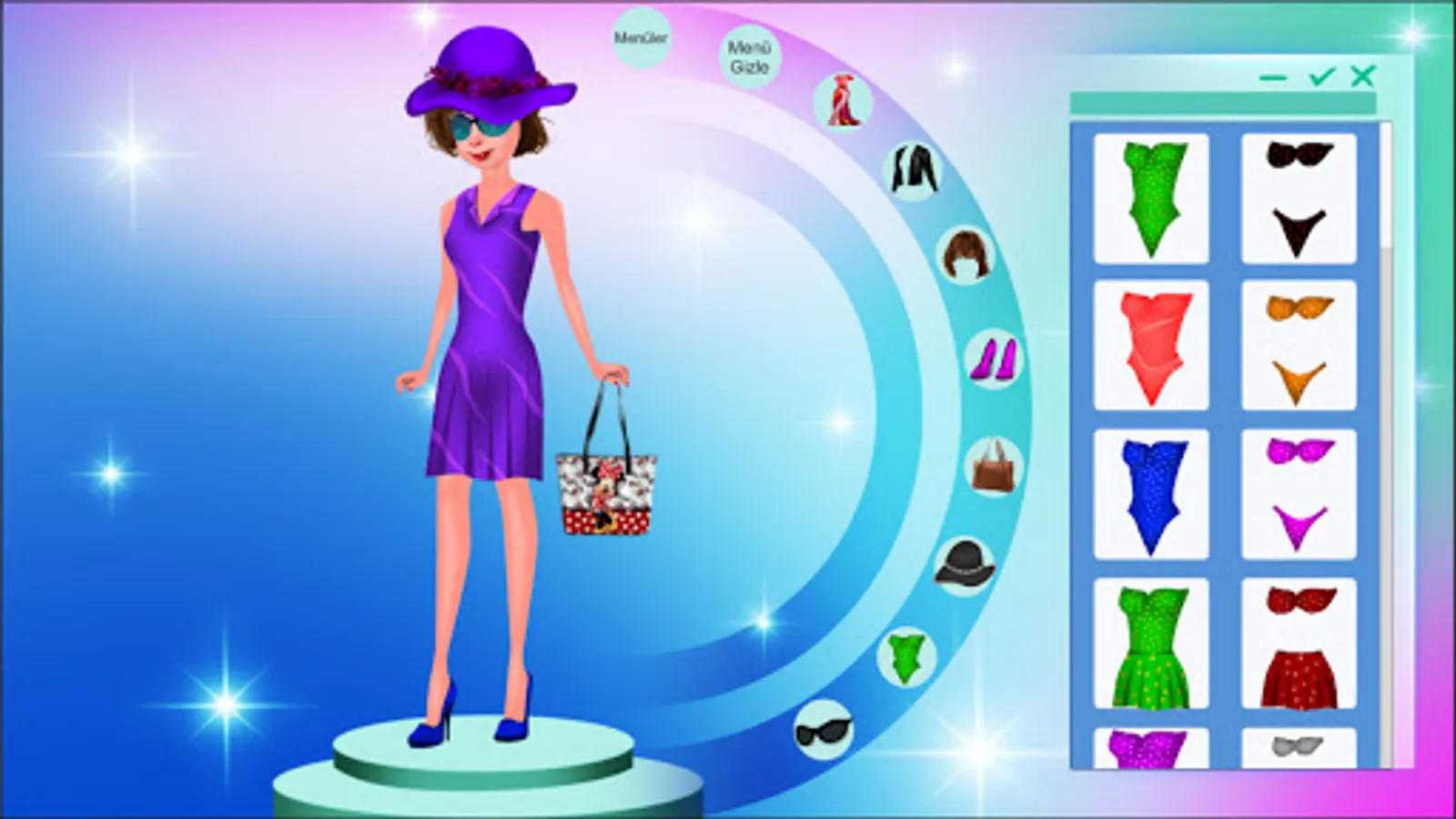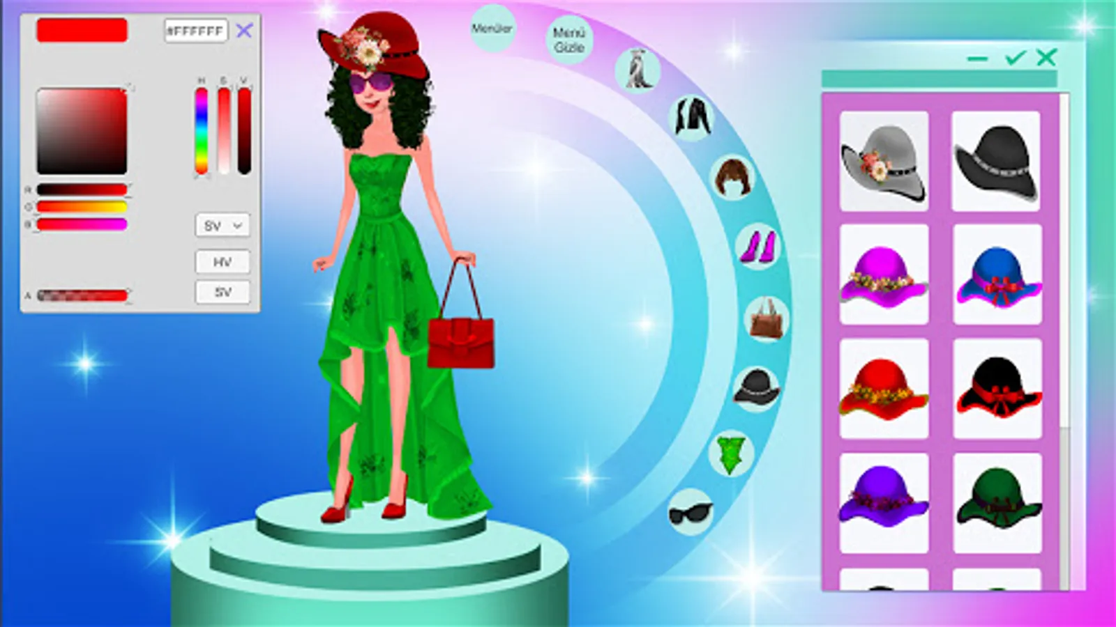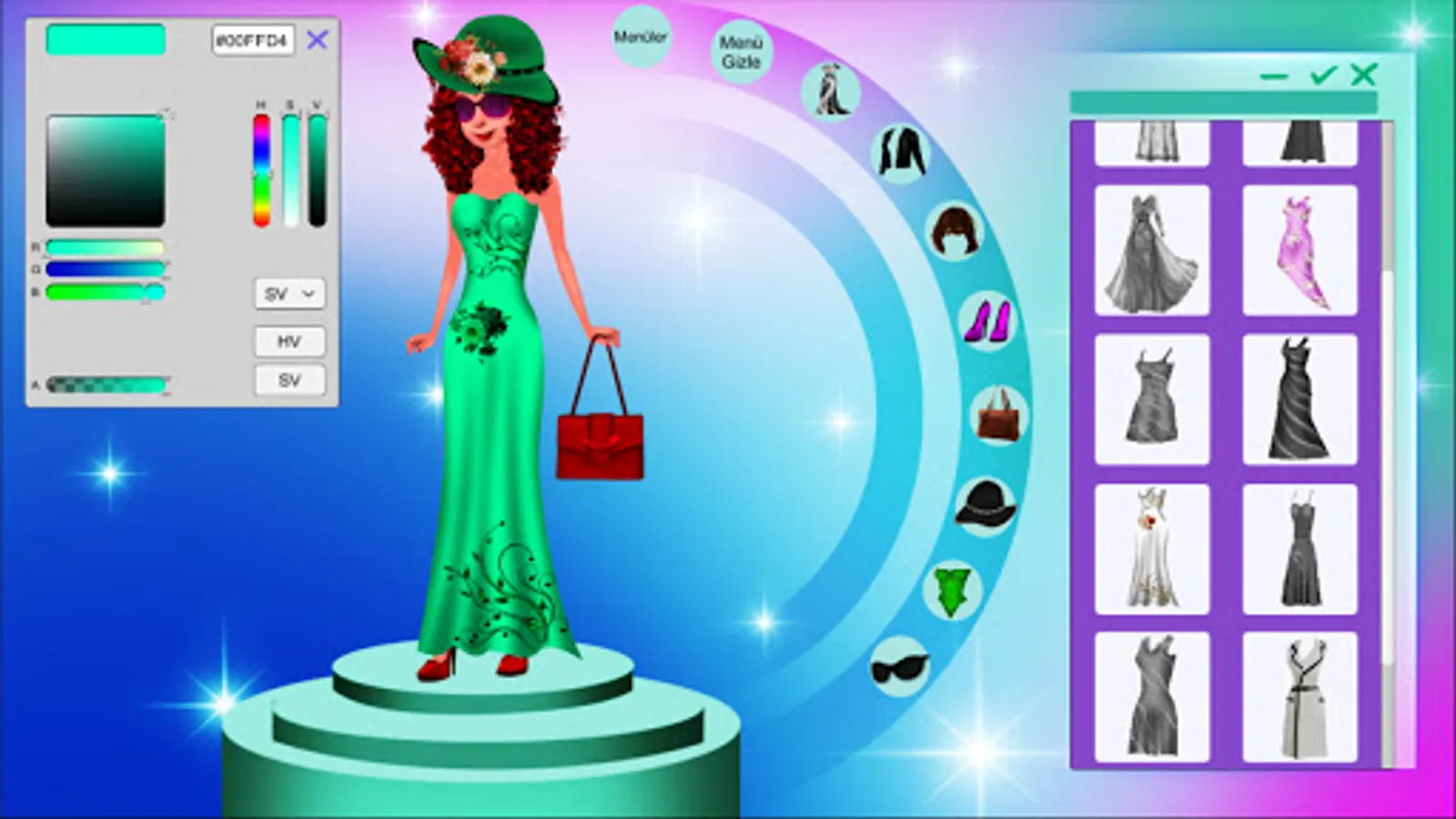 Hazır bir kız modelimiz var. Hali hazırda var olan renkli elbiseler, montlar, çantalar, ayakkabılar ve saç modelleri ile kombin yap. Hangi renkleri güzel ve uyumlu bulmuşsan bu kombine uygun sende giyinebilirsin. Elbise kombin yapma oyunu. Oyunumuza Renk paleti ekledik.