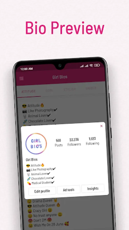 So, what are you waiting for? Just install the Girl Bios app and set Bio for your Instagram to make your profile look more attractive & Get more followers and impress your followers and your love, friends.