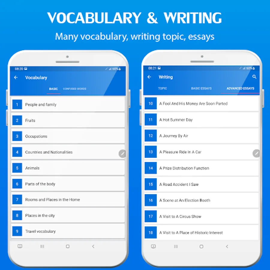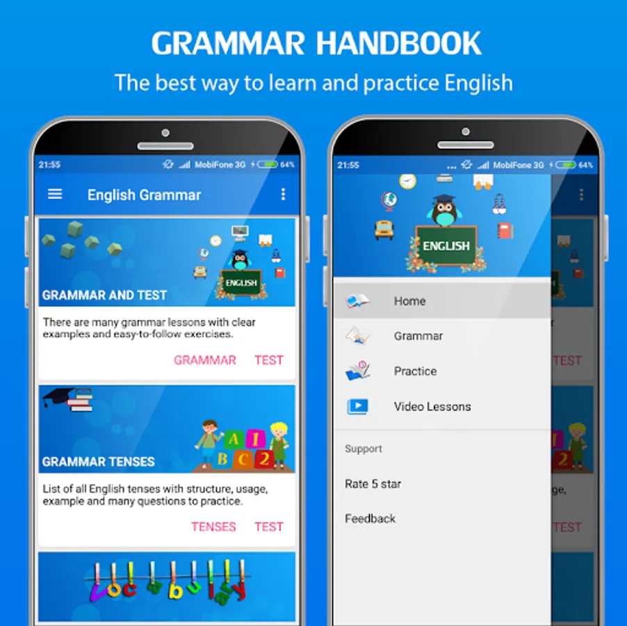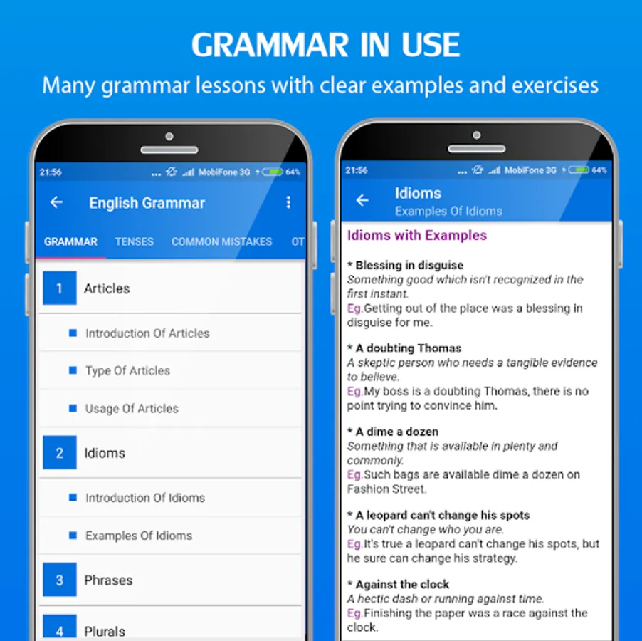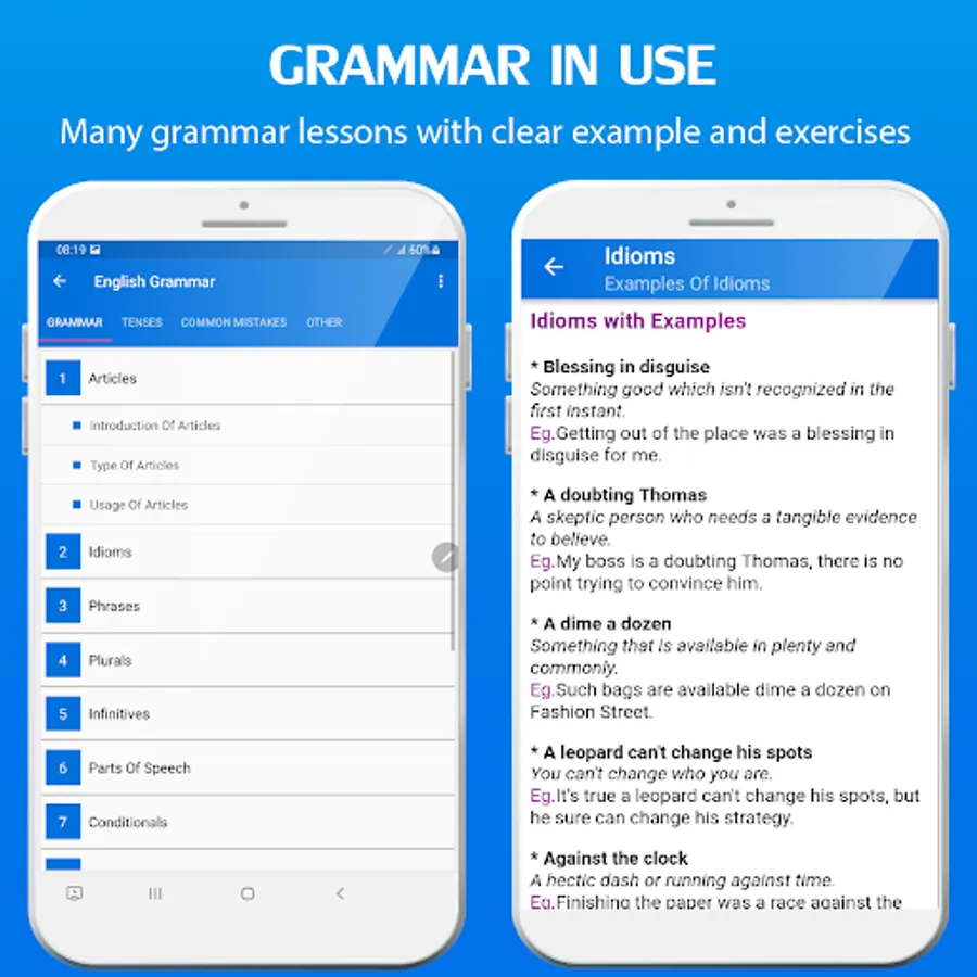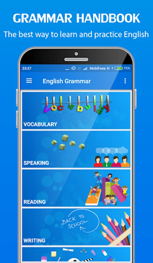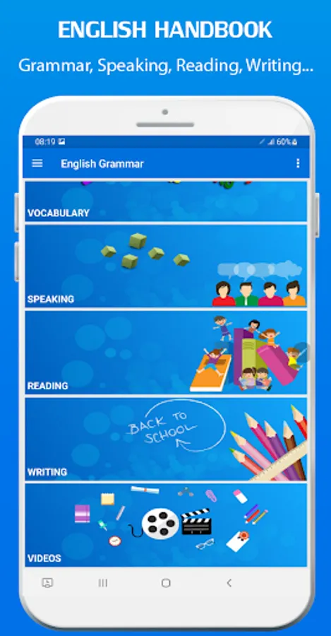 This app designed for you to learn English Grammar, Writing, Speaking and Reading.