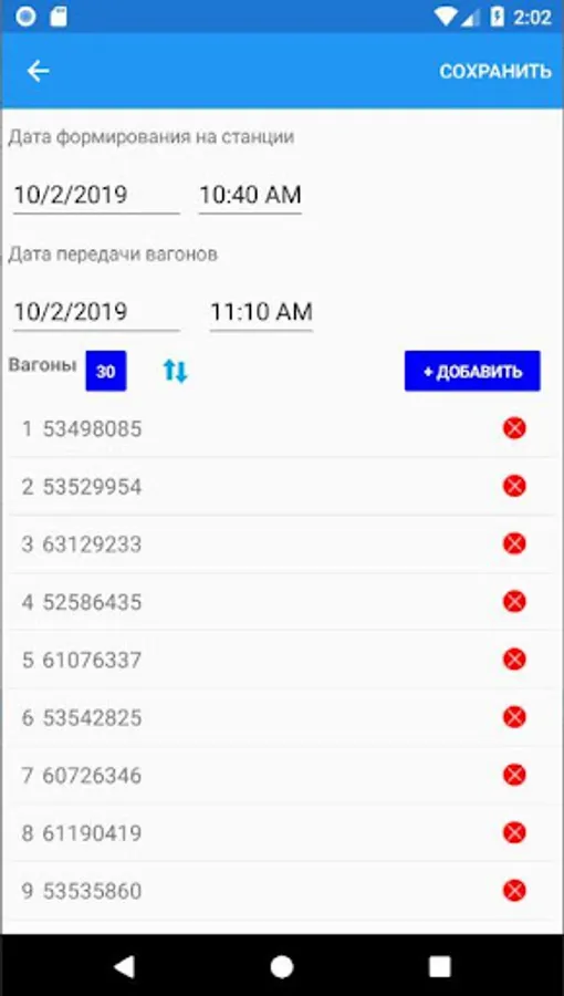 Mobile application for conducting commercial inspection of wagons by commercial agents of the station